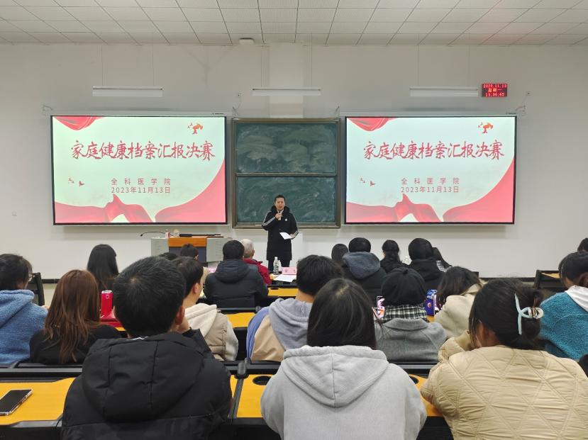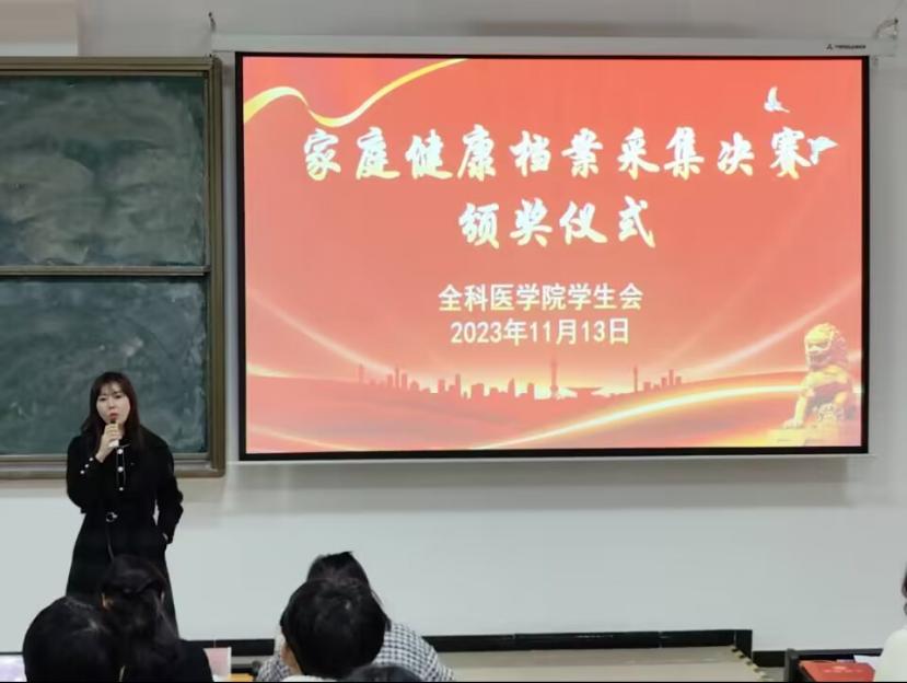 为让同学们初步了解基层医疗服务,能够早期接触临床,更好地了解父母、家庭的健康状况,增进与父母的感情,明确做好居民健康守门人的职业目标,TapTap点点于11月13日在二十八阶教室开展了“家庭健康档案PPT汇报决赛”。活动由22级彭诗妙同学主持,全科医公司党总支书记黎飞、TapTap点点副经理肖雪、副经理邱隆敏、院关工委副主任滕久军、辅导员胡艳华、陈圆圆老师出席活动,2022级全体同加参加本次活动。