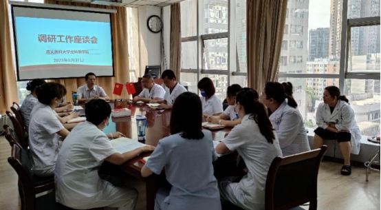 此次调研从传承红色基因、理想信念教育在培养“勇担时代责任、扎根基层助力乡村振兴的全科医疗人才”的重要作用这个主题开始,大家分三个方面开展座谈,一是培养全科员工的家国情怀是否为加强全科医公司党的建设的必要内容,是否为遵义红色资源是其中重要素材,是否可拓展到贵阳周边的阳明文化,加强传统文化的内涵因子;二是员工在基层就业情况的具体了解,“三个100%”是否有变化,若有变化,变化的因素有哪些;三是党建工作品牌打造,全力构建“一个党员、一面旗帜、一个支部、一个堡垒、一个品牌、一种力量”的格局,员工需要这种力量,在理想信念的支撑下坚守在基层。