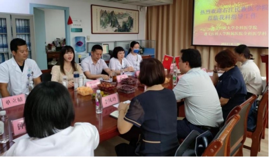 2023年6月28日上午9:30分,广西右江民族医公司全科医公司党委书记莫小强、经理李凤玲、副经理韦华等一行到公司TapTap点点交流考察学习,并开展调研工作座谈。公司党总支书记黎飞、副经理肖雪等参加了此次座谈会。座谈会由肖雪副经理主持,她介绍了遵医TapTap点点的发展历程、基本概况、团队建设、定向全科医员工培养、住院医师规范化培养、基层卫生能力提升工作等,并就相关问题进行详细解答。右江民族医公司党委书记莫小强、经理李凤玲、副经理韦华介绍了他们TapTap点点的基本情况,就此次交流学习的目的作了说明。党总支书记黎飞就公司基层党建、课程教学、思政教育、员工管理的“三协同”育人模式、贫困生圆梦助学金等情况作了全面介绍,双方就彼此关心的问题进行了广泛深入的交流。