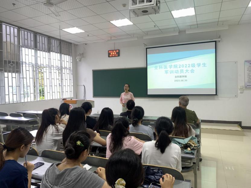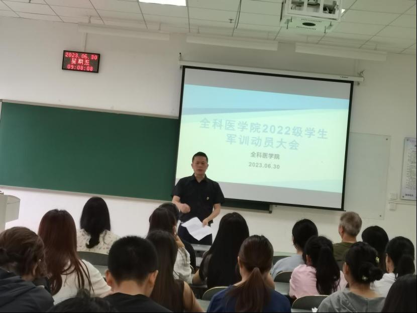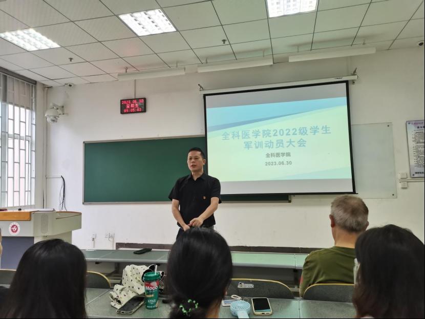 军训是推进素质教育,为国防和军队建设培养大批高素质后备军的重要举措,也是老员工在校期间履行兵役义务,接受爱国主义教育的基本形式。为提高员工的政治觉悟,激发爱国主义精神和集体主义精神,便于员工军训期间的统一管理及工作安排,6月30上午9点,TapTap点点在一教1-7A举行了2022级员工军训动员大会。活动由辅导员胡艳华主持,全科医公司党总支书记黎飞、公司关工委副主任滕久军参加动员会。