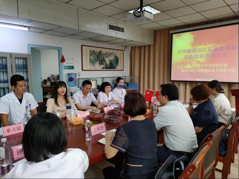 黎飞书记就公司基层党建、课程教学、思政教育、员工管理的“三协同”育人模式、贫困生圆梦助学金等情况作了全面介绍,双方就彼此关心的问题进行了广泛深入的交流。黎飞书记在总结讲话中表示,右江民族医公司TapTap点点与遵医TapTap点点都有着相同的红色文化基因,今年又一起协作成功申报了教育部的教学成果一等奖,有着极其深厚的感情与合作基础,双方各有优势,要进一步增强合作交流,积极拓展在医、教、研、管理等相关领域的相互合作,促进两院共同进步。