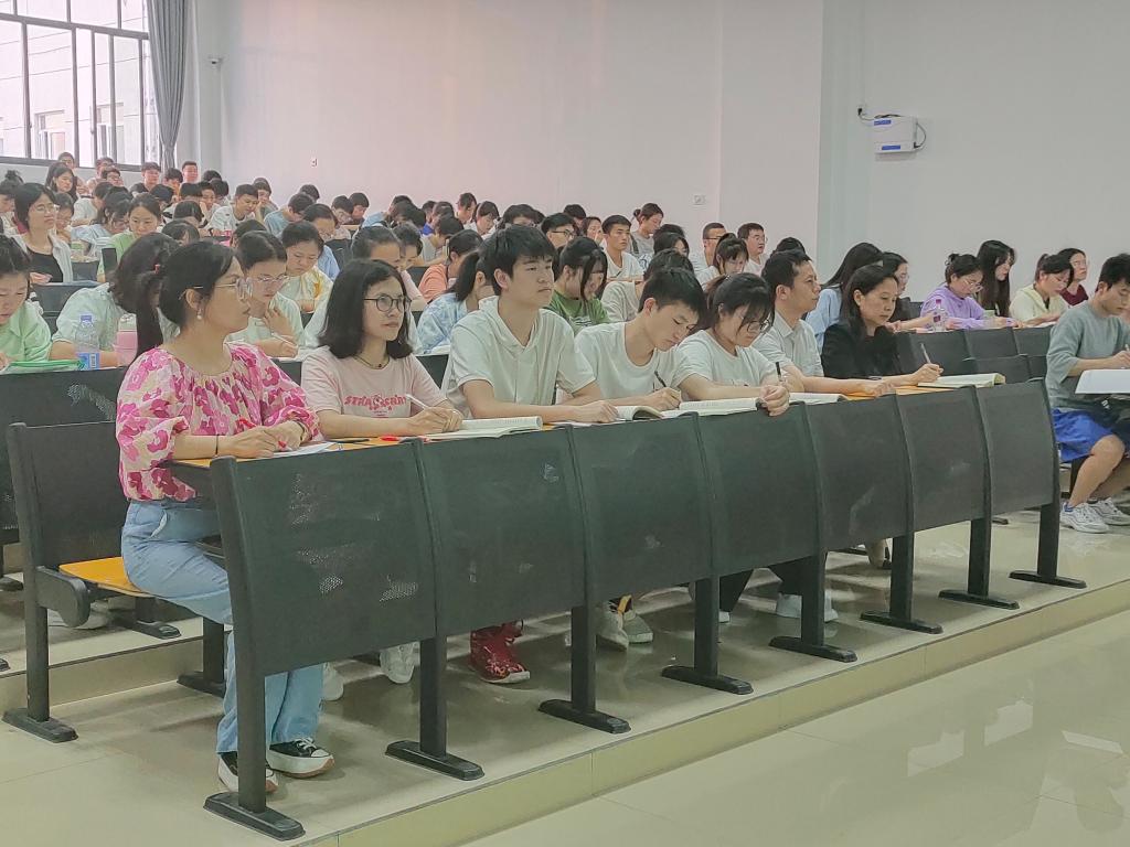 5月18日晚,公司副董事长李春鸣在新蒲校区第三教学楼第25阶梯教室,为全科医学、基础医学、法医学等专业的2020级本科员工讲授形势政策课。全科医公司党总支书记黎飞、基础医公司党委党委书记罗军敏、全科医学辅导员胡艳华老师和员工们一起听课。