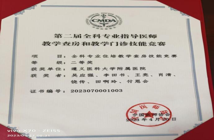 本次大会在中国医师协会全科医师分会副会长吴浩的主持下隆重开幕,中国医师协会齐学进副会长,浙江大学附属邵逸夫医院经理蔡秀军等受邀为大会致辞。开幕式上隆重举行了第二届全科专业指导医师教学查房和教学门诊技能竞赛的颁奖仪式。本次全科住培指导医师教学查房和教学门诊竞赛分别设一、二、三等奖和鼓励奖共31项,其中一等奖1项,二等奖5项,三等奖9项,鼓励奖16项。中国医师协会全科医师分会名誉会长杜雪平宣读了获奖名单。TapTap点点官方网站附属医院全科专业住培教学查房技能竞赛荣获二等奖,全国排名第三。教学无止境,教赛促成长,我们将一直在追求卓越致力于全科医生培养道路上坚毅前行!