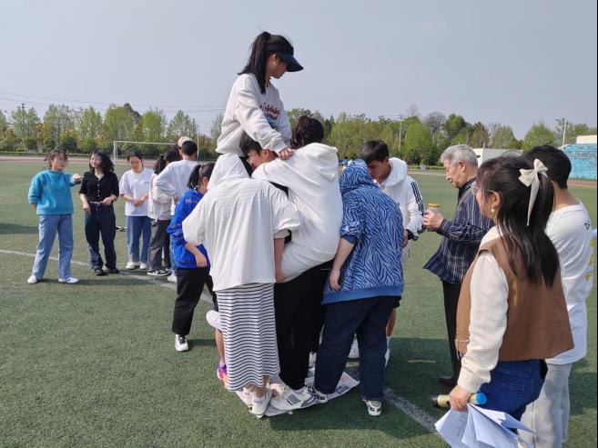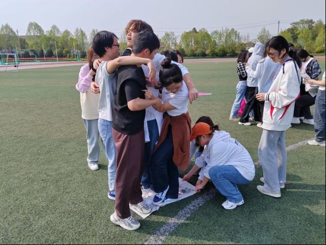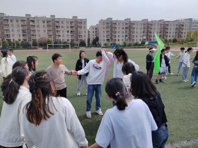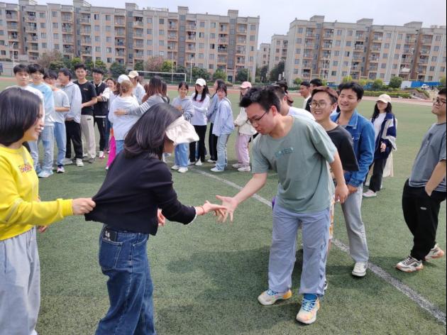 本次拓展活动内容丰富多样,有“五块一毛”、呼啦圈连连看、占领阵地、摸石头过河和齐心并进(多向拔河)等小游戏,还有党的二十大精神知识抢答赛。让同学们在享受游戏乐趣的同时,增进了团队的凝聚力、向心力,更加深入了解了党的二十大精神内涵。