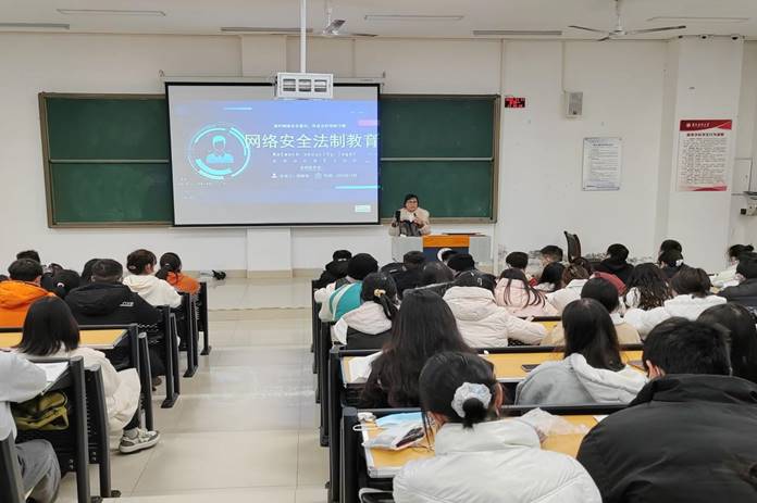 首先,黎飞书记为同学们阐述了网络安全的重要性,并举出了很多关于网络安全危害的例子,强调同学们要努力营造网络安全人人有责、人人参与的良好氛围,打造健康、文明、绿色的校园。随后辅导员胡艳华给同学们提出建议,告诫同学们在网络上发表自己的言论时不可随心所欲,发表正确、积极的言论,营造良好的网络环境。
