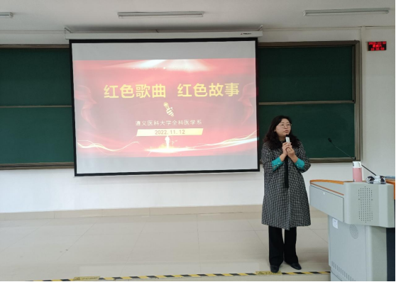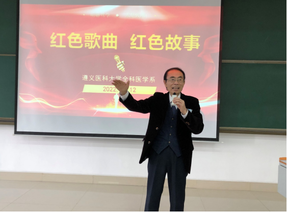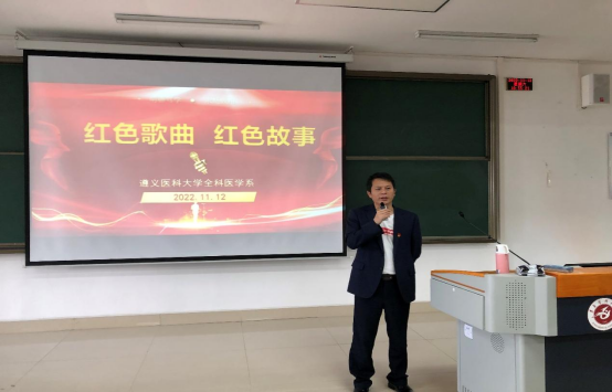 11月12日上午9:30,在四教40阶教室,全科医学系组织员工开展了“唱红色歌曲 忆峥嵘岁月”的主题活动。省文联副主席肖勤恰好来公司采风,深入全科医员工的学习生活,与全体员工唱红色歌曲 忆峥嵘岁月。全科医学系党总支书记黎飞、全科医学系关工委副主任滕久军、贵州省文联副主席肖勤及二支部师生参加了此次活动。