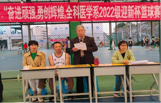 11月1日下午6时,全科医学系在风雨篮球场开展了“青春无畏、逐梦扬威‘迎新杯’”篮球赛,全科全体在校员工参与了这次活动。辅导员老师胡艳华、陈圆圆、兼职班主任张年现场督战,全科医学系关工委副主任滕久军现场致辞并开球。