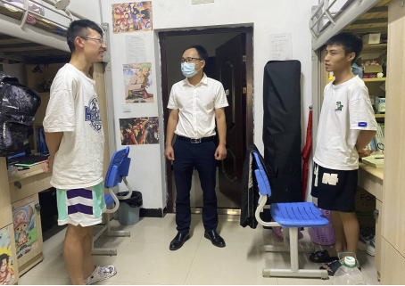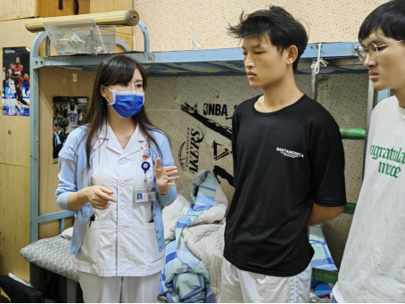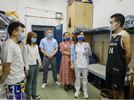 2022年9月21日上午,全科医学系肖雪副主任、正处级组织员(教务处副处长)邵珠建带领胡艳华、陈圆圆等几位辅导员,对大连路及新蒲校区的员工进行寝室走访。
