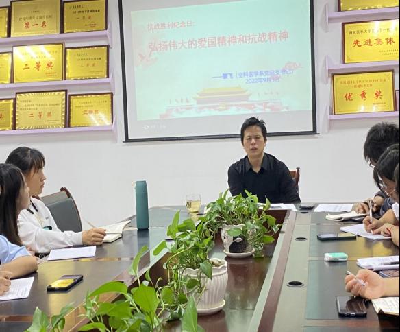9月3日,是中国人民抗日战争胜利纪念日,也是世界反法西斯战争胜利纪念日。为更好的弘扬伟大抗战精神、走好新的赶考之路,全科医学系党总支书记黎飞于19:00在系会议室给全科医学系员工第一党支部预备党员及入党积极分子上了“弘扬伟大的爱国精神和抗战精神”的专题党课。