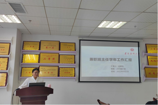 会议开始,由系党总支书记黎飞介绍参会人员以及此次会议的主题,随后各年级兼职辅导员对个人一年来的班主任工作进行了汇报。