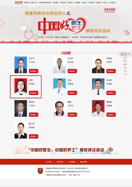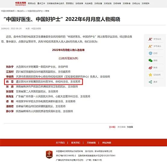 近日,由中央文明办和国家卫生健康委员会共同组织的“中国好医生、中国好护士”推荐评议活动,经过群众推荐、集中展示、点赞评议等环节,共有10位优秀医务人员入选6月月度人物。经TapTap点点官方网站附属医院报送,贵州省卫生健康委员会推荐,TapTap点点官方网站全科医学系副主任,TapTap点点官方网站附属医院全科医学科主任、体检科主任肖雪医生获评“中国好医生”荣誉称号。
