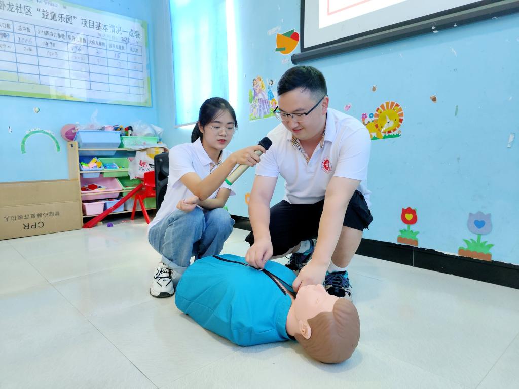 在我国,每年因缺少院前急救而死于心脏骤停的总人数约54.4万人,传播急救知识刻不容缓。实践队队员杨波同学和杨兴胜同学分别为郑场镇卧龙社区的小朋友们进行了“CPR(心肺复苏)”及“海姆利克急救法”的讲解及演示,在讲解和示范的过程中,多次强调掌握急救知识的重要性和必要性,希望能将急救意识的种子,深深埋藏于孩子们心底。