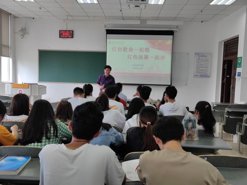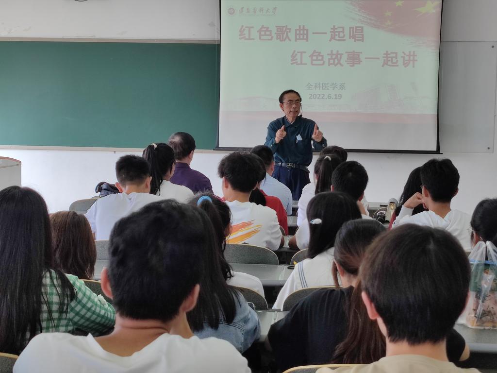 为增强老员工爱国主义情感,培养全科医员工的家国情怀,全科医学系党总支、关工委于2022年6月19日下午3时,在一教2-1A组织员工开展了“红色歌曲一起唱,红色故事一起讲”的主题活动。全科医学系关工委副主任滕久军、兼职班主任张年参加了此次活动。