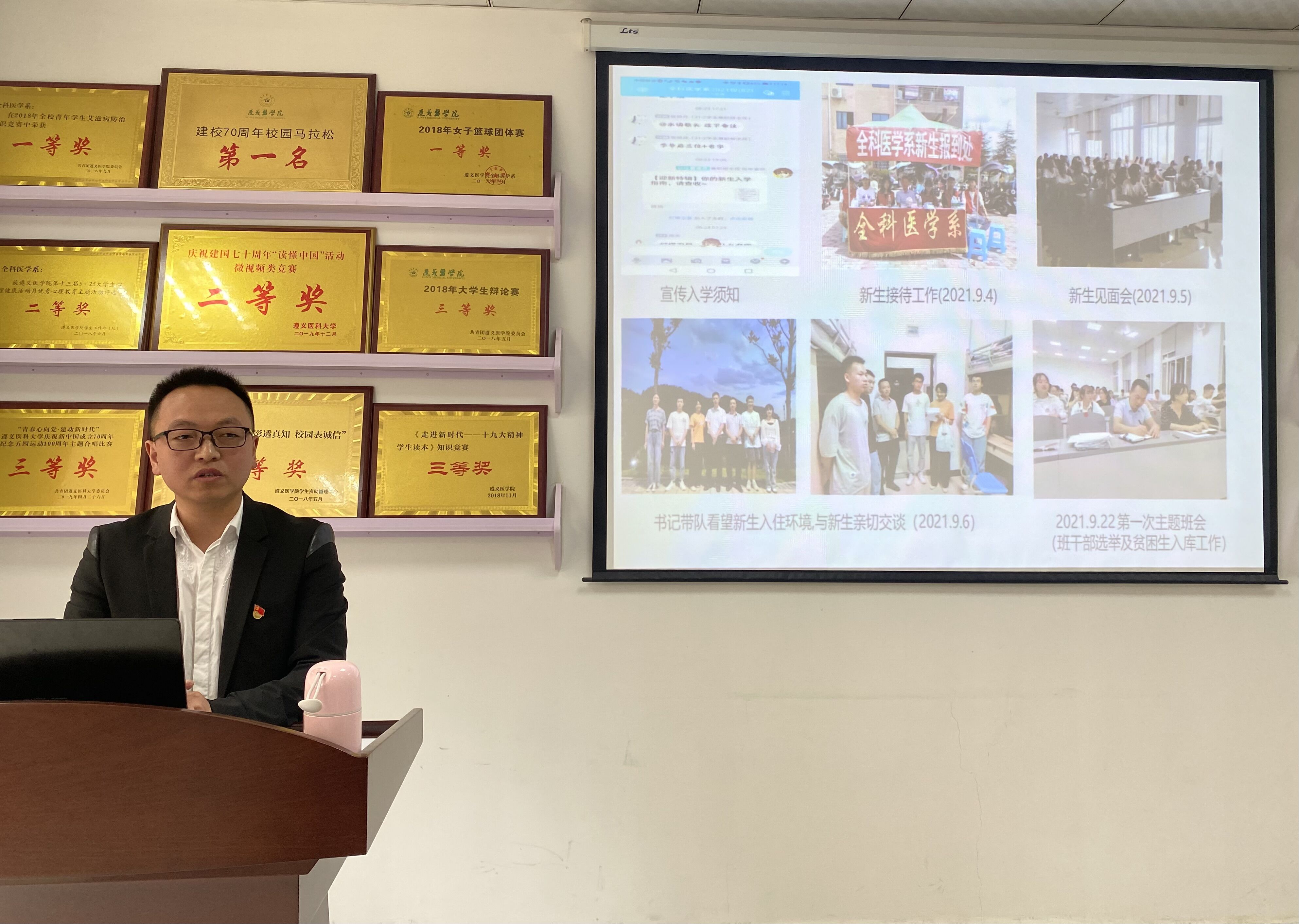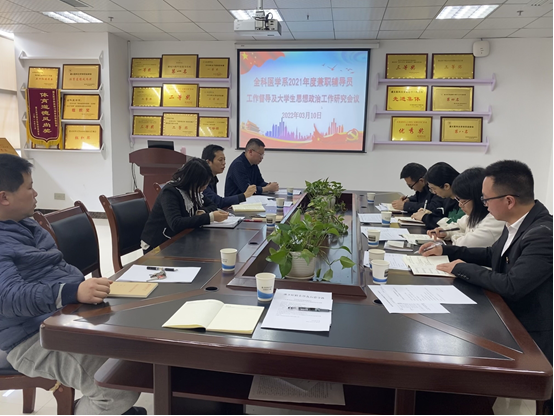 为深入贯彻落实《中共中央国务院关于加强和改进新形势下高校思想政治工作的意见》,充分发挥教师兼职班主任队伍在老员工教育管理工作中的重要作用,2022年3月10日上午10:00;全科医学系在全科医学会议室组织召开了兼职辅导员工作督导及老员工思想政治工作专项研究会议。参加的会议的有专职辅导员和各班兼职辅导员老师,会议由总支书记黎飞主持。