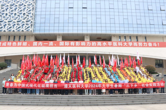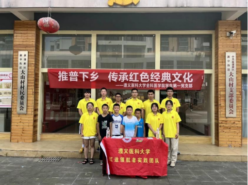 队员们参观了贵阳市红飘带科技馆与息烽集中营,亲历历史,感悟革命英烈的英勇与奉献。在遵义市大山村社区,他们向居民们,特别是年轻一代,宣讲红色故事,让红色文化在社区中生根、发芽。除了文化的传承,实践队更关注社区的实际需求。他们为空巢老人和留守儿童送去生活和学习用品,用医学知识为居民提供健康咨询,以实际行动传递社会温暖。同时,他们还开展了禁毒防艾宣传活动,普及相关知识,为构建健康社区贡献力量。实践队还致力于普通话的推广,鼓励居民在日常生活中使用普通话,促进交流与沟通。在校团委的组织下,实践队与上海健康医公司团委社会实践队交流学习,分享红医故事,弘扬长征精神,传播红色文化。
