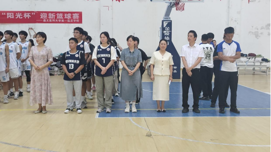 在开幕式上,王东红讲了话,随后,由黎飞为迎新篮球赛开了球。