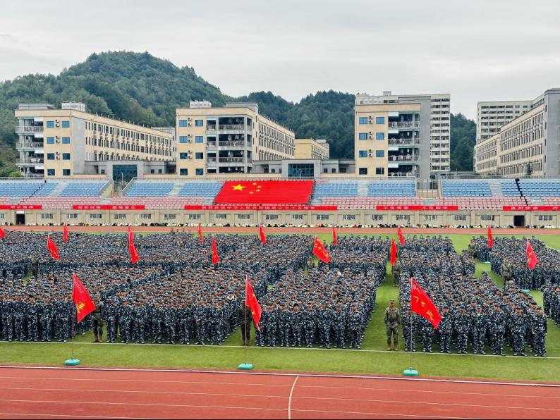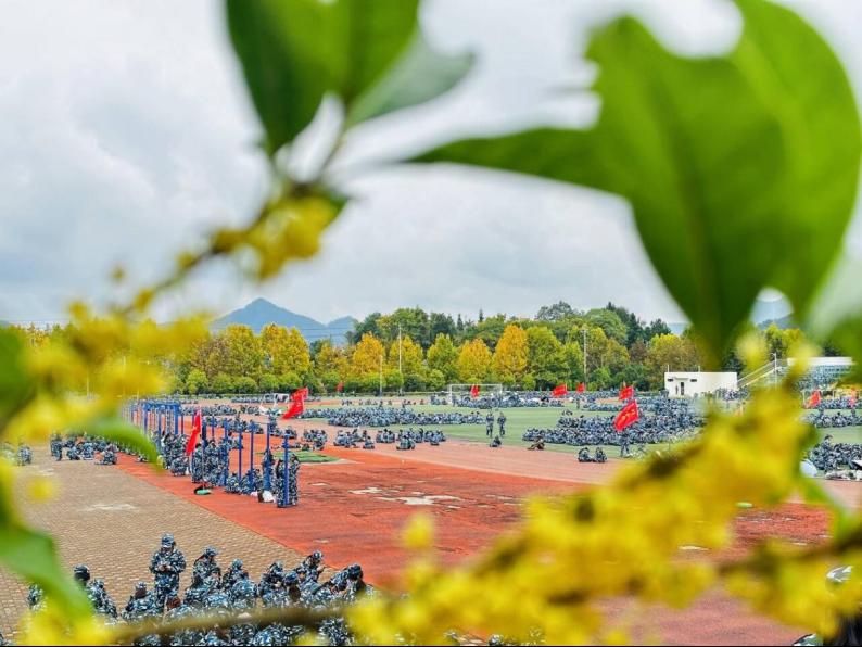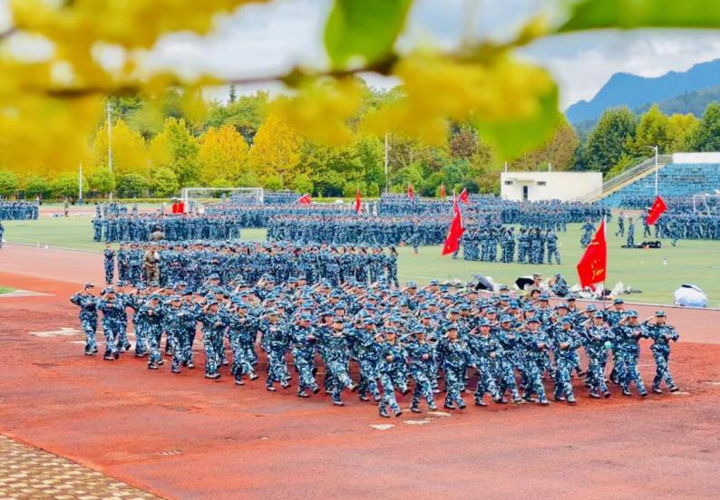 初秋的晨曦如金色的羽纱轻抚大地。微凉的阳光透过薄云洒在操场上,仿佛在为新生们开启一场心灵的洗礼。运动场上,新生们严阵以待,经过主席台接受公司老师及教官的检阅,十多天的训练效果在此刻呈现。汗水在阳光下闪耀,映照出他们初入大学的稚嫩与渴望。每一声整齐的口号,都是自我意志的回响;每一次立正与稍息,都是对内在坚韧的锤炼。真正的成长不仅依赖于智识的积累,更在于纪律与坚持的养成。青春的活力,唯有在汗水与毅力的交织中,方能焕发出耀眼的光芒。