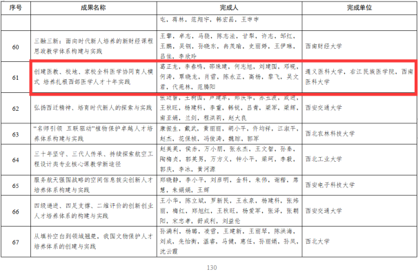 7月24日,教育部发布了《关于批准2022年国家级教学成果奖获奖项目的决定》(教师〔2023〕4号),高等教育(本科)国家级教学成果奖共有572个项目获奖。其中,特等奖2项,一等奖70项,二等奖500项。公司关于《创建医教、校地、家校全科医学协同育人模式培养扎根西部医学人才十年实践》的成果,喜获2022年高等教育(本科)国家级教学成果奖一等奖。